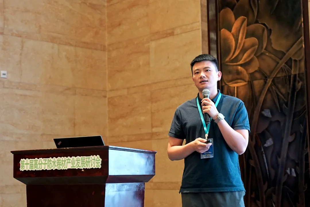 作为行业内具有影响力的企业,欧西盾还在会议期间受邀进行了专题技术分享报告。欧西盾以 《高分子防水卷材的全领域应用——技术突围与趋势前瞻》为主题,回顾并总结了金属屋面防水系统过去十年的发展历程与技术演进,为行业同仁提供了宝贵的经验借鉴。其次,欧西盾重点阐述了高分子防水卷材在材料性能方面的持续创新与显著提升,这是其产品在市场上保持竞争力的核心所在。在此基础上,报告进一步探讨了高分子卷材在更广泛应用领域的延展潜力,为行业未来的发展方向提供了新思路。最后,报告还对高分子防水卷材行业从业人员的职业发展前景进行了前瞻性展望,体现了企业对行业人才培养的高度关注。