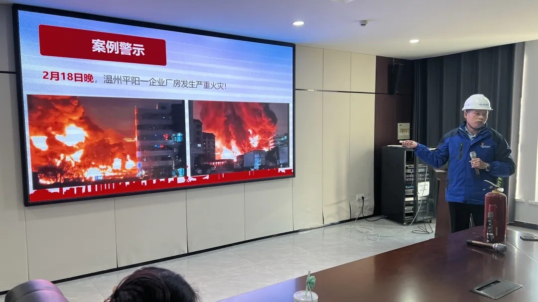 授课过程中,重点讲解了火灾初期的扑救技巧、不同类型消防器材的适用场景与正确操作方法,详细拆解了“提、拔、握、压”灭火器使用四步法的核心要领。同时,针对办公区域、生产车间常见的电气火灾、易燃物料起火等隐患,还分享了日常防火“三清三关”准则(清走道、清阳台、清厨房,关火源、关电源、关气源),并通过互动问答的形式,解答了员工们在日常工作中遇到的消防安全疑问,现场学习氛围浓厚,大家认真记录要点,积极参与交流。